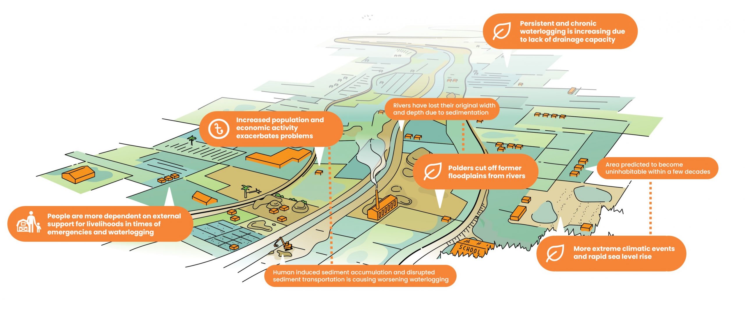 The Vicious Cycle. A Delta under strain: cumulative human impacts colliding with a warming climate